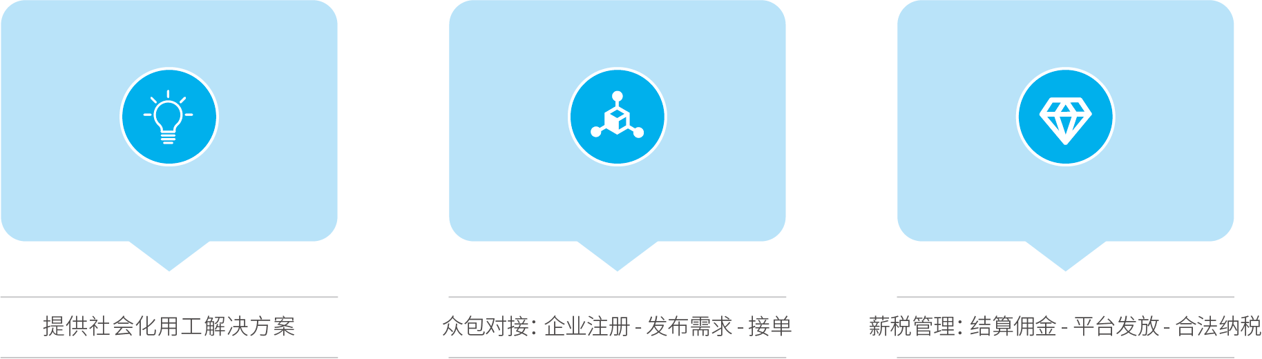 我司自主研發的靈活用工平臺“薪益社”是依托市場經濟發展,作為新型的人力資源共享平臺。平臺致力于為企業建立“社會化用工”新體系,在合法合規前提下,為企業節約運營成本,規避用工風險,合理解決用人需求。同時,實現自由職業者的費用結算、納稅、申報及繳納的一體化服務。